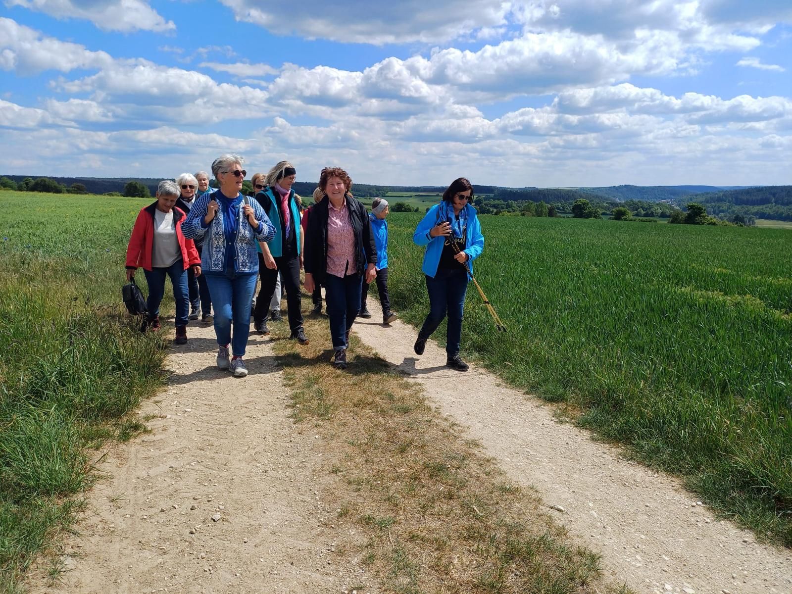 Thanheim liegt ca. 5 km nach Haselbach in Richtung Ensdorf. Der etwa 5 km lange Rundweg, anfangs mit leichter Steigung, führte durch die Flur mit Blick nach Rieden und Ensdorf an geschmückten Martern vorbei und bot eine entspannte Wanderung.